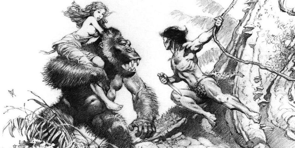 Tarzan of the Apes, as the approaching centenary suggests, was first published in 1912, serialised in the pulp All-Story Magazine (it was collected as a single-volume novel two years later). He was Edgar Rice Burroughs’ second great creation following John Carter, and like Carter, his immediate attraction for contemporary audiences was an almost impossibly exotic location. The jungles of Africa may technically have been closer to home than the deserts of Mars, but were still vastly beyond the travel capability of almost anyone, and remained unexplored enough to believably contain endless lost cities and undiscovered races. Arriving only thirteen years after Joseph Conrad’s Heart of Darkness, Tarzan of the Apes is obviously a very different book, but it’s arguably dealing with that same horror and fascination regarding what it might mean to “go native”. Burroughs’ own cheerful ignorance of the region led to his populating his dense jungle with various species that prefer open plains, and with giant apes that don’t exist at all.